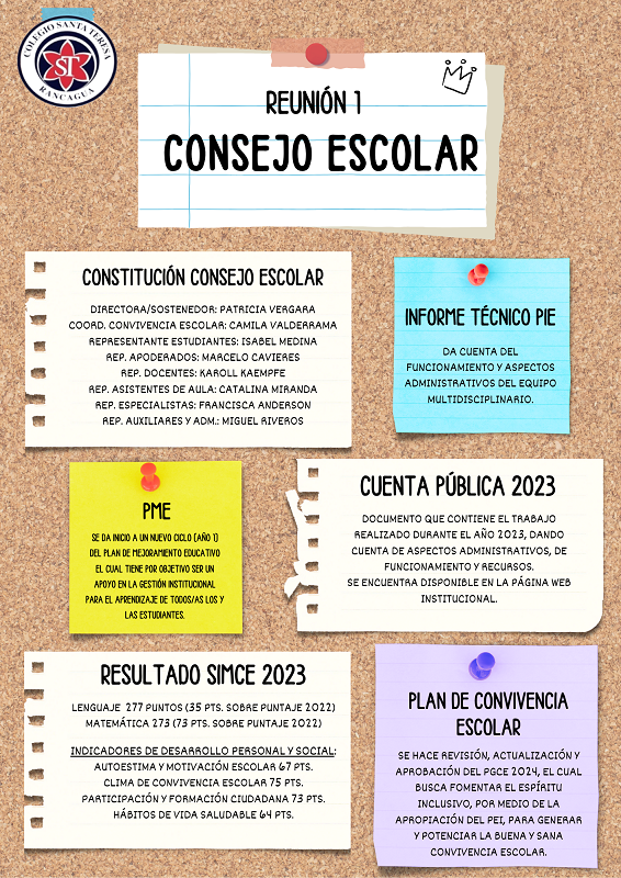Rancagua 05-04-2024.- El día de ayer, se realizó la primera sesión del Consejo Escolar de nuestro establecimiento para el periodo 2024. Dicho Consejo tiene de un carácter informativo, consultivo y propositivo sobre temas relevantes de la comunidad educativa, con el objetivo de fortalecer la calidad de educación de los estudiantes.